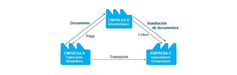 En este tipo de operaciones intervienen un vendedor o proveedor, uno o varios intermediarios, así como un comprador o adquirente.